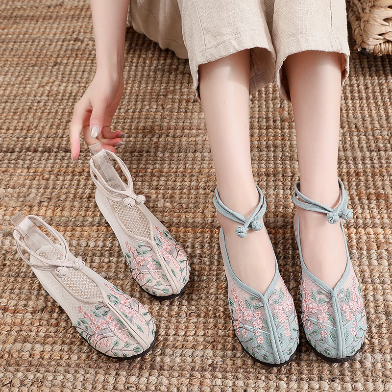 With intricate floral patterns adorning the cotton and linen uppers, these flats exude ethnic charm. The round toe design and low-cut silhouette add a subtle hint of tradition while keeping your look modern and chic.